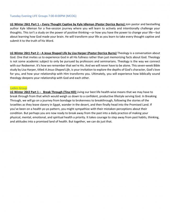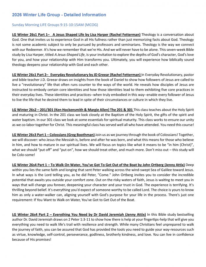 2026 WINTER LIFE GROUPS BEGIN THE WEEK OF JAN. 11